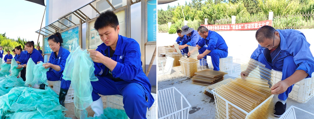 虾夷扇贝在苗种繁育和稚贝养殖过程中,苗种出库和分苗阶段离不开大量的网袋,把单个网袋一层层套在一起,20个为一组的套网袋比赛,看似简单重复,却是手速和专注力的比拼,只有套的快 宅男视频高清,查的准,一丝不苟,张弛有度,套出来的网袋才能为幼苗提供更优良的养殖环境。