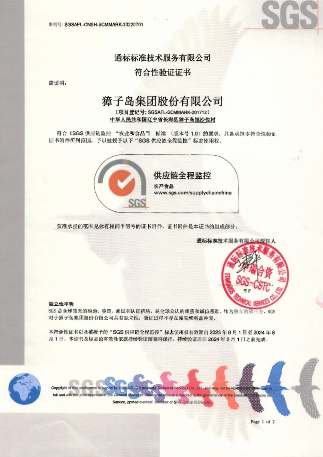 獐子岛集团的现场及产品检测均符合SGS SCM MARK要求,经SGS执行委员会批准 宅男视频高清,于8月1日再次取得了SGS SCM MARK标志授权使用证书,在新的授权周期内,獐子岛集团的海参制品每个季度需接受SGS对全供应链各环节的监督评估,确保产品持续符合标准要求。