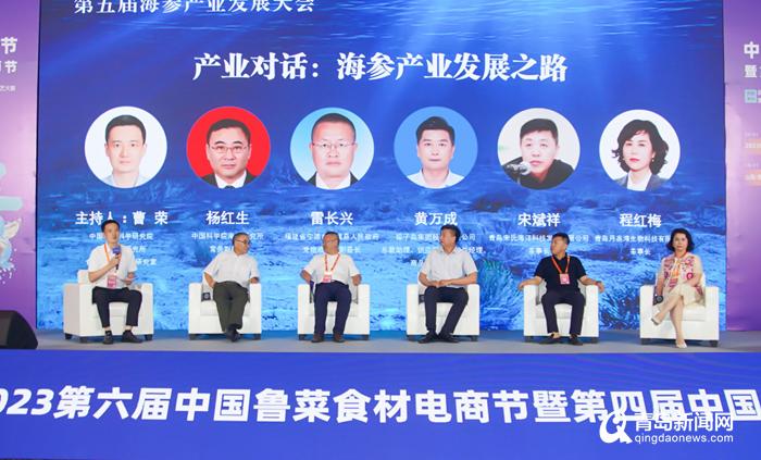 大会产业对话围绕“海参产业发展之路”这一主题展开,由中国水产科学研究院黄海水产研究所食品工程与营养研究室曹荣主任主持。六位对话嘉宾分别为中国科学院海洋研究所杨红生常务副所长,福建省宁德市霞浦县人民政府雷长兴党组成员、副县长,獐子岛集团股份有限公司总裁助理、供应链事业部总经理、商品研发部经理黄万成先生,青岛宋氏海洋科技发展有限公司宋斌祥董事长,青岛月亮湾生物科技有限公司程红梅董事长。