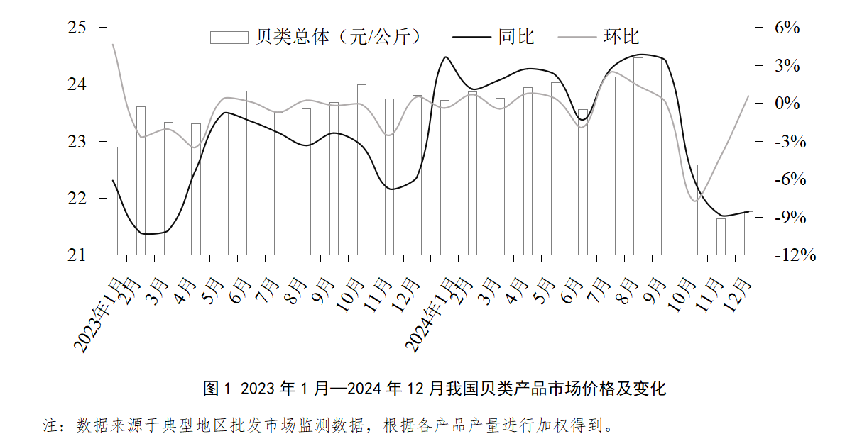 2024年,受产量较大的牡蛎和高价值的鲍的价格同比下降明显影响,我国贝类产品总体价格同比稳中微降,降幅为0,34%,其中第四季度我国贝类产品价格下降较明显。相反,主要得益于产业链完整和供给增长有限等,扇贝、蛤类的价格同比分别增长9,82%、7 宅男视频,85%,蛏的价格同比增长2,29%。。