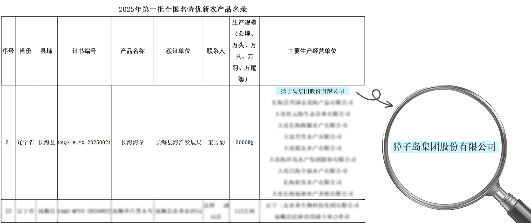 近日,农业农村部农产品质量安全中心公告发布2025年第一批全国名特优新农产品名录,全国251个名特优新农产品上榜,其中,长海海参入选,这是长海县继长海虾夷扇贝,长海鲍鱼 宅男视频,长海香螺后入选的第4个全国名特优新农产品。