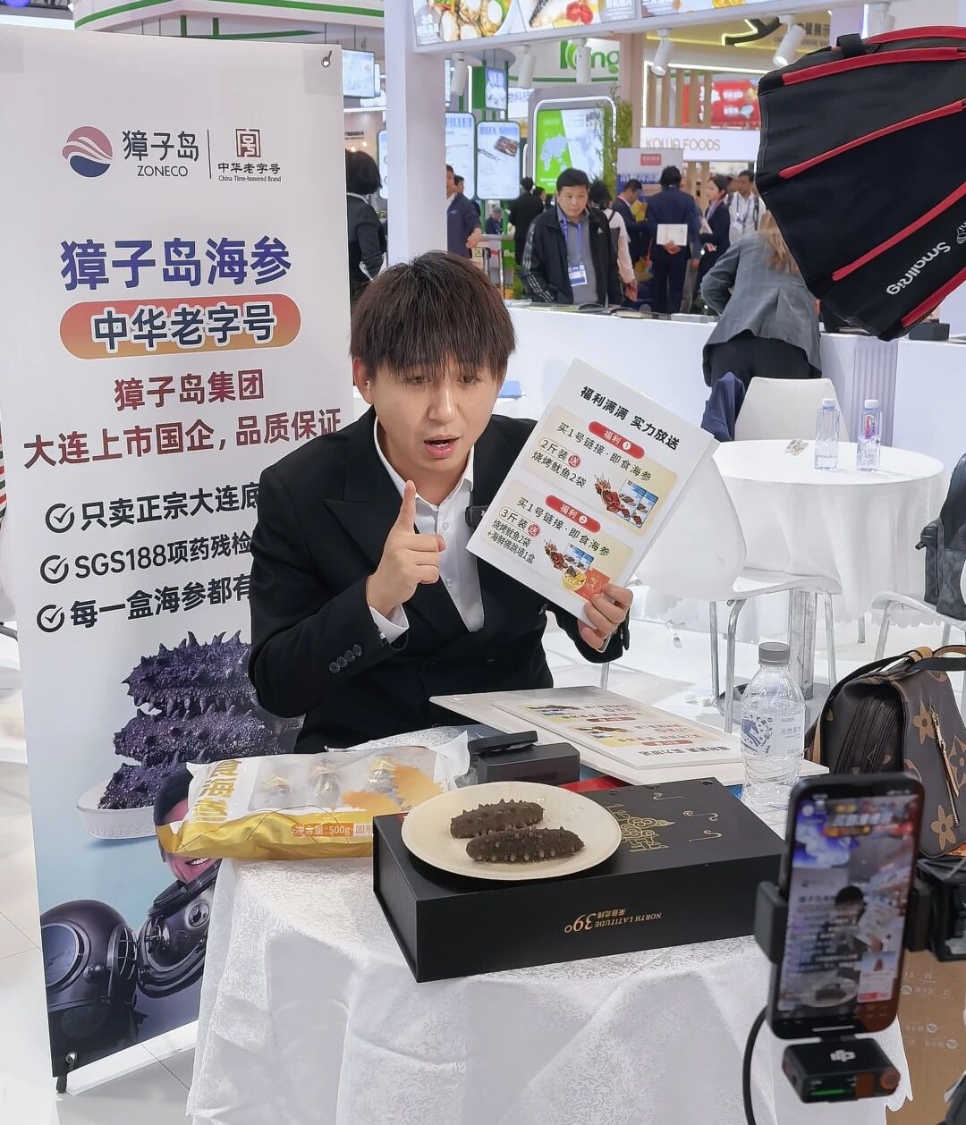 此外,为方便未能亲临现场的观众参与,獐子岛集团还通过官方抖音,快手 宅男影院,视频号等平台进行直播,实时传递展会动态,并开通线上选购通道,打破地域限制,扩大展会影响力。