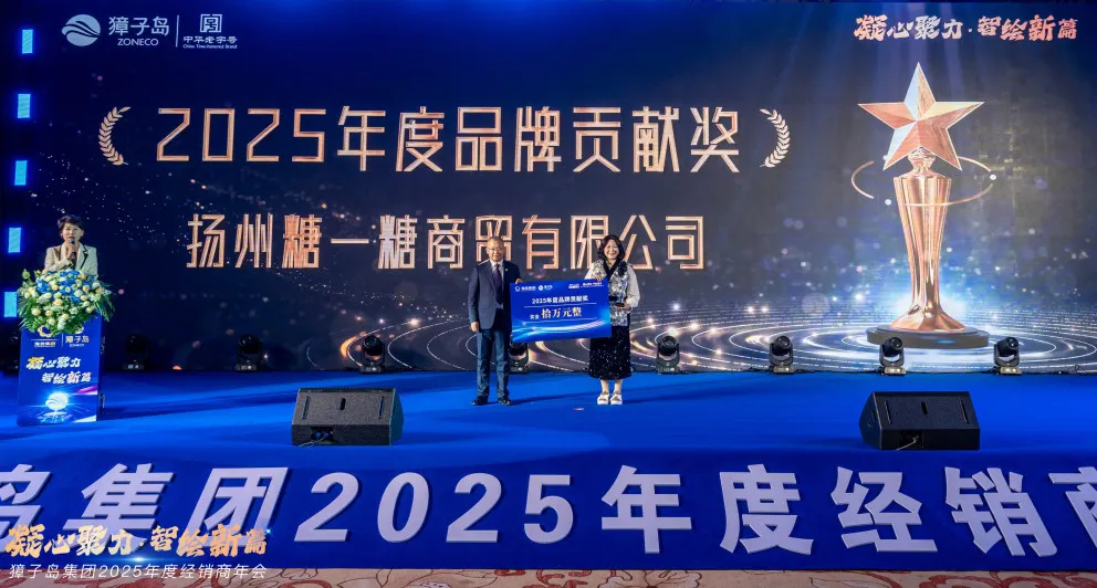 扬州糖一糖商贸有限公司凭借其卓越的品牌宣传与市场推广能力,荣获“2024年度品牌贡献奖”。他将持续25年热度不减的苏超话题与獐子岛品牌巧妙关联;在扬州地区的候机大厅、公交站台、演唱会等众多场景投放广告,全力提升獐子岛在江苏地区的品牌影响力与美誉度。