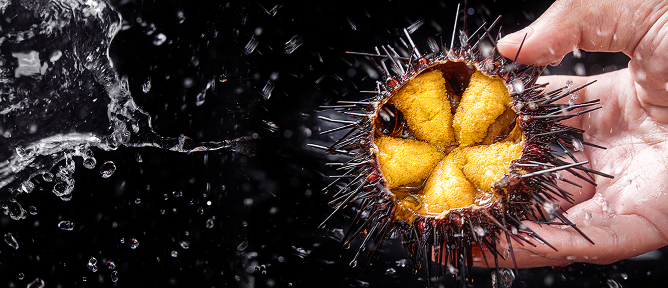 獐子岛海洋牧场底部大型海藻种类丰富,储量巨大,适宜紫海胆和黄海胆自然觅食生长。紫海胆,学名光棘球海胆;海刺猬,俗称黄海胆。两种海胆个体较大,肉质色泽鲜亮、口感绵密鲜甜,含有多种氨基酸、矿物质、不饱和脂肪酸及维生素,有助于促进钙质吸收代谢、生血养血、增强免疫力,预防心血疾病和维护健康。
