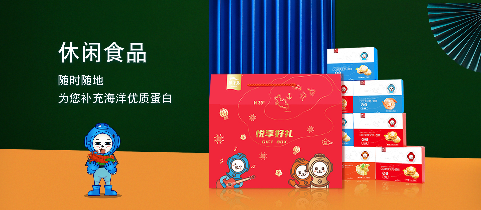 獐子岛休闲食品系列精选自獐子岛海洋牧场和大洋深海的优质原料,运用新含气调理技术,锁住海鲜的风味与营养。