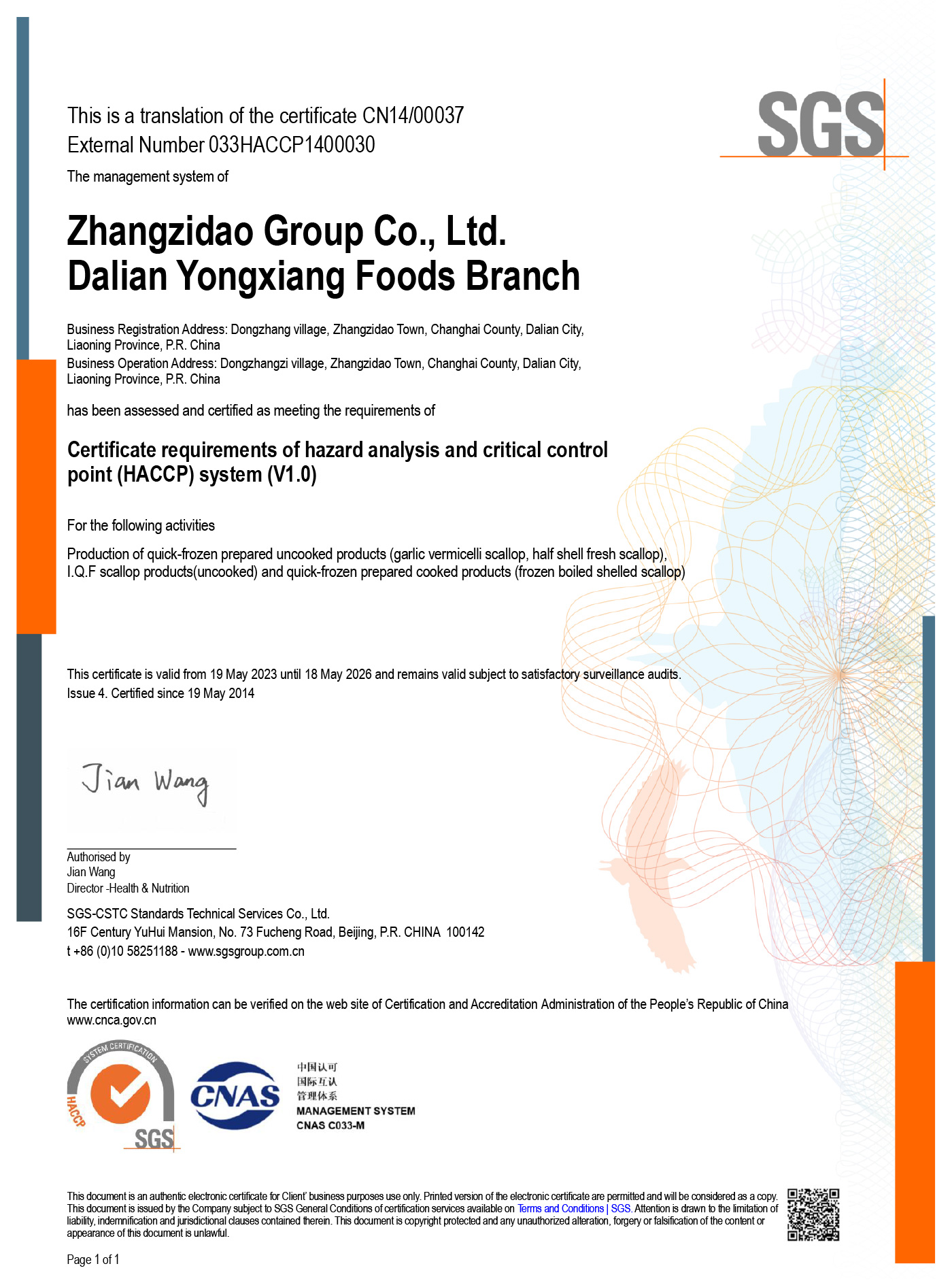 Zoneco Group Co.,LTD Dalian Yongxiang Branch located in Zhangzidao island, which is the southernmost island in Changhai County, Dalian, Liaoning. The company was founded in 1980, with a total construction area of over 223.26 million square meters. It can achieve an annual processing capacity of over 29000 tons of shellfish raw materials and a refrigeration capacity over 1500 tons. The company has obtained various certifications such as HACCP, ISO 90001, BRC, organic product certification, SGS SCM MARK, and export qualifications. It is a processing and production base of shellfish and sea cucumber.The raw materials produced by the company are all sourced from the national A-class production marine aquaculture areas. The products are mainly exported to countries and regions such as the United States, Canada, Australia, New Zealand, Japan, South Korea, Hong Kong, etc.SCALLOP