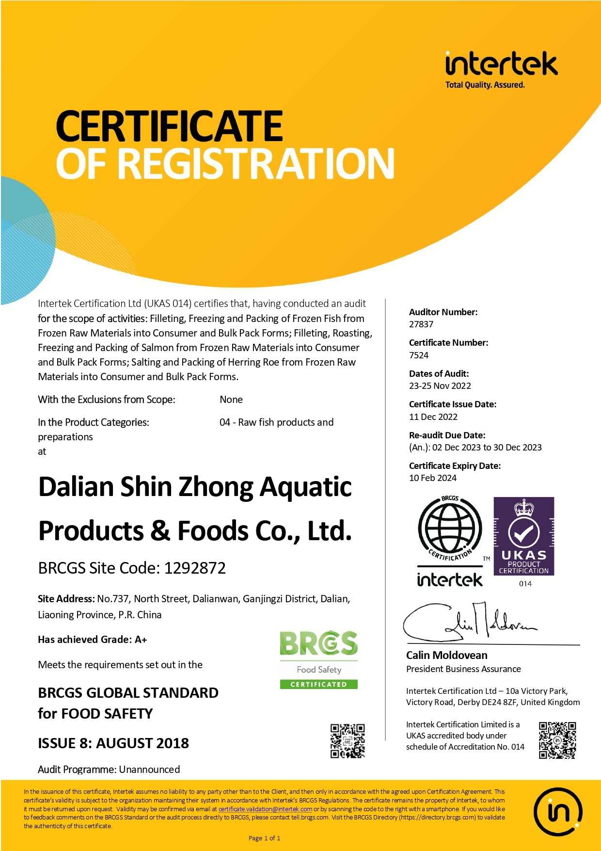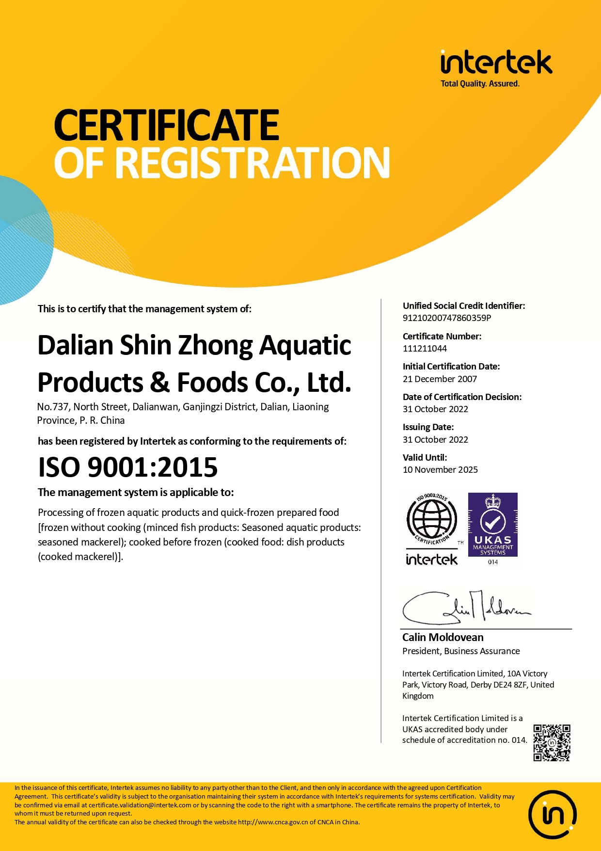 "宅男影院" Dalian Shinzhong Aquatic ProductS&Foods Co., Ltd.