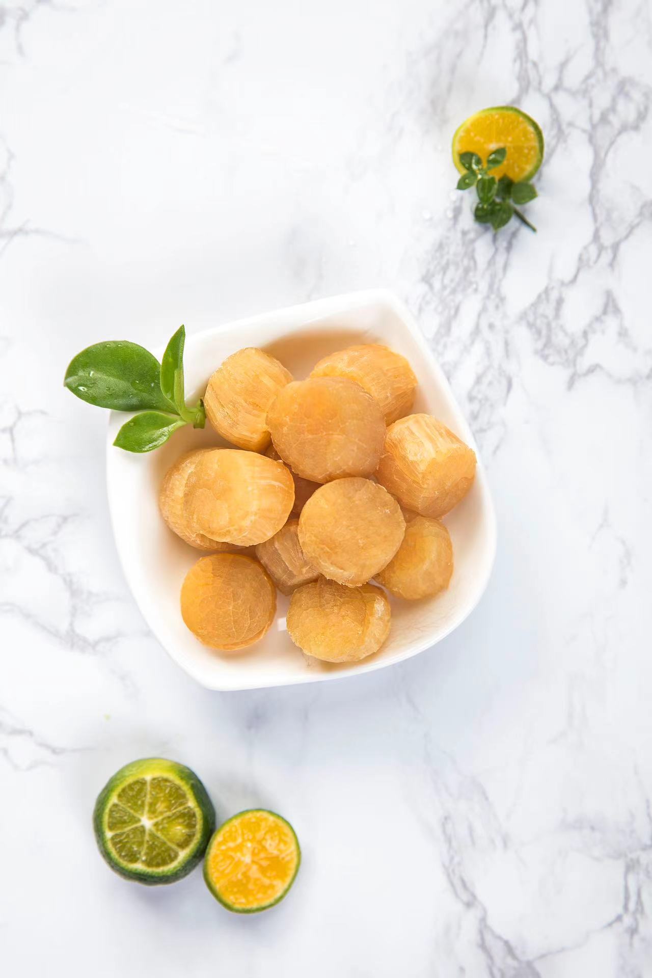 Our Products include Frozen boiled scallop meat,Frozen scallop meat(Scallop adductor),Frozen half shell scallop,Frozen scallop with garlic and vermicelli,Dried sea cucumber,Cavia.